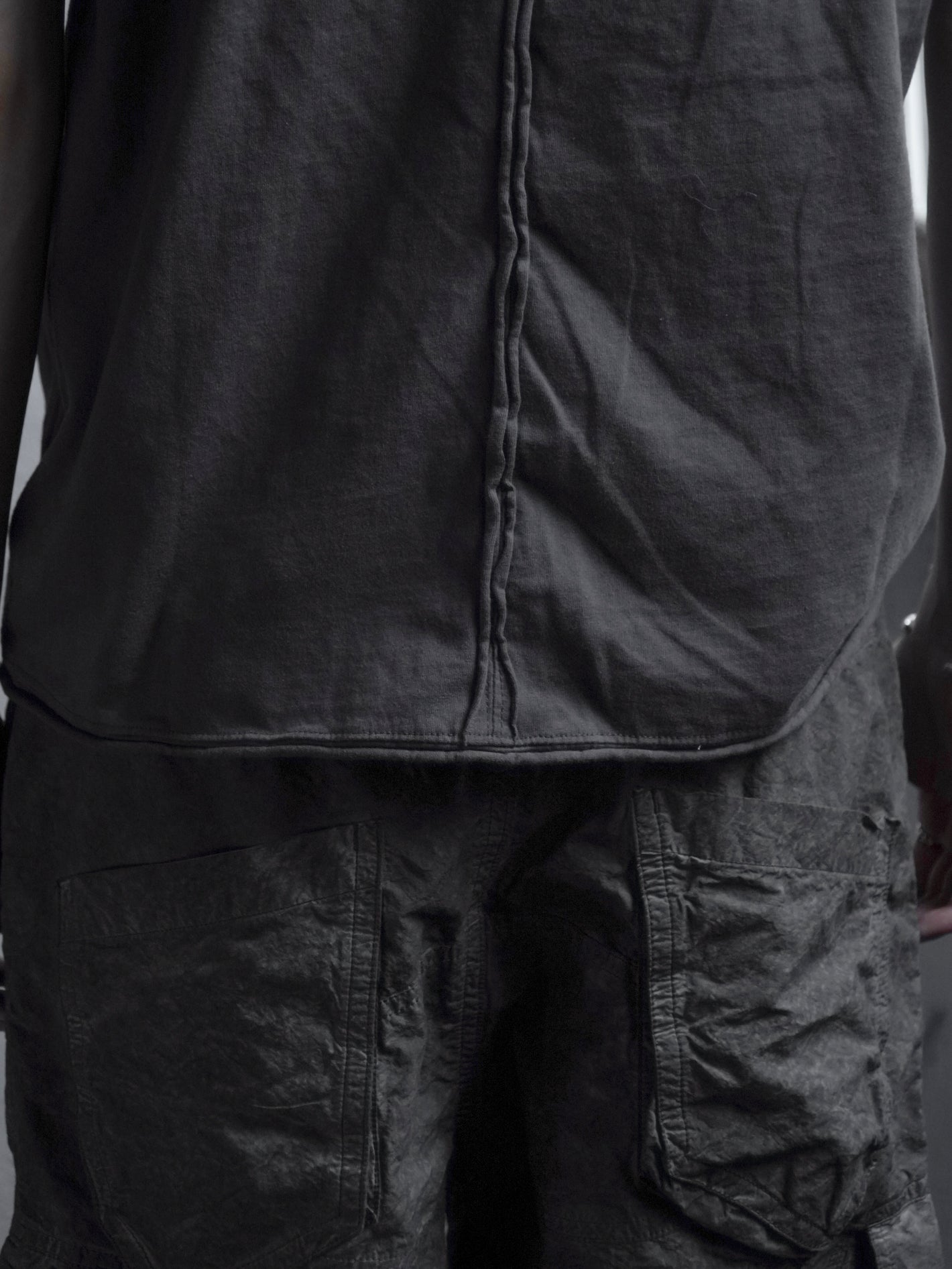 로우컷 된 넥라인, 소매단, 밑단, 후면절개