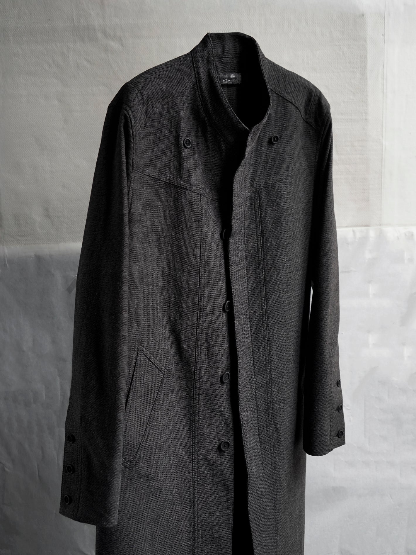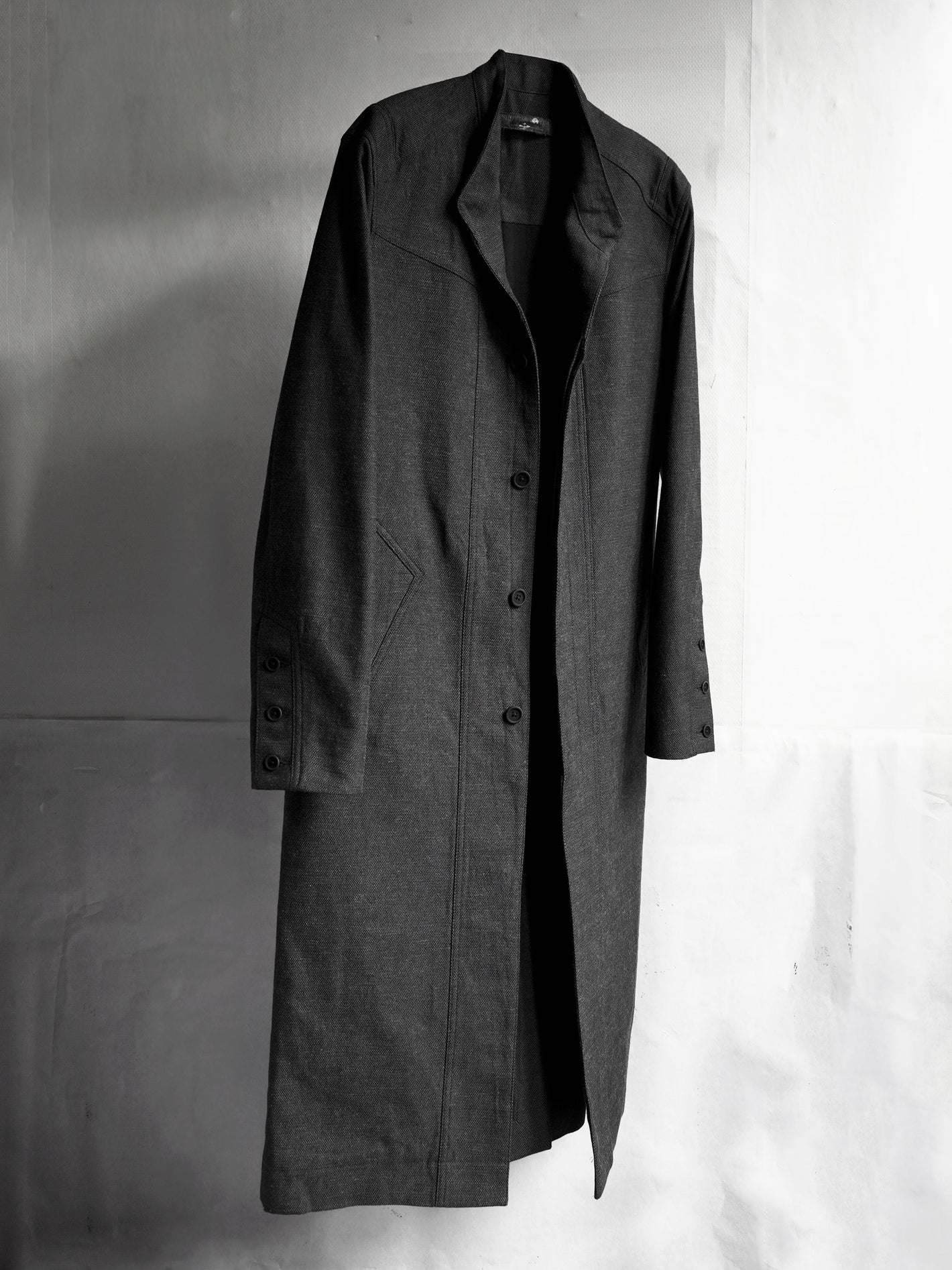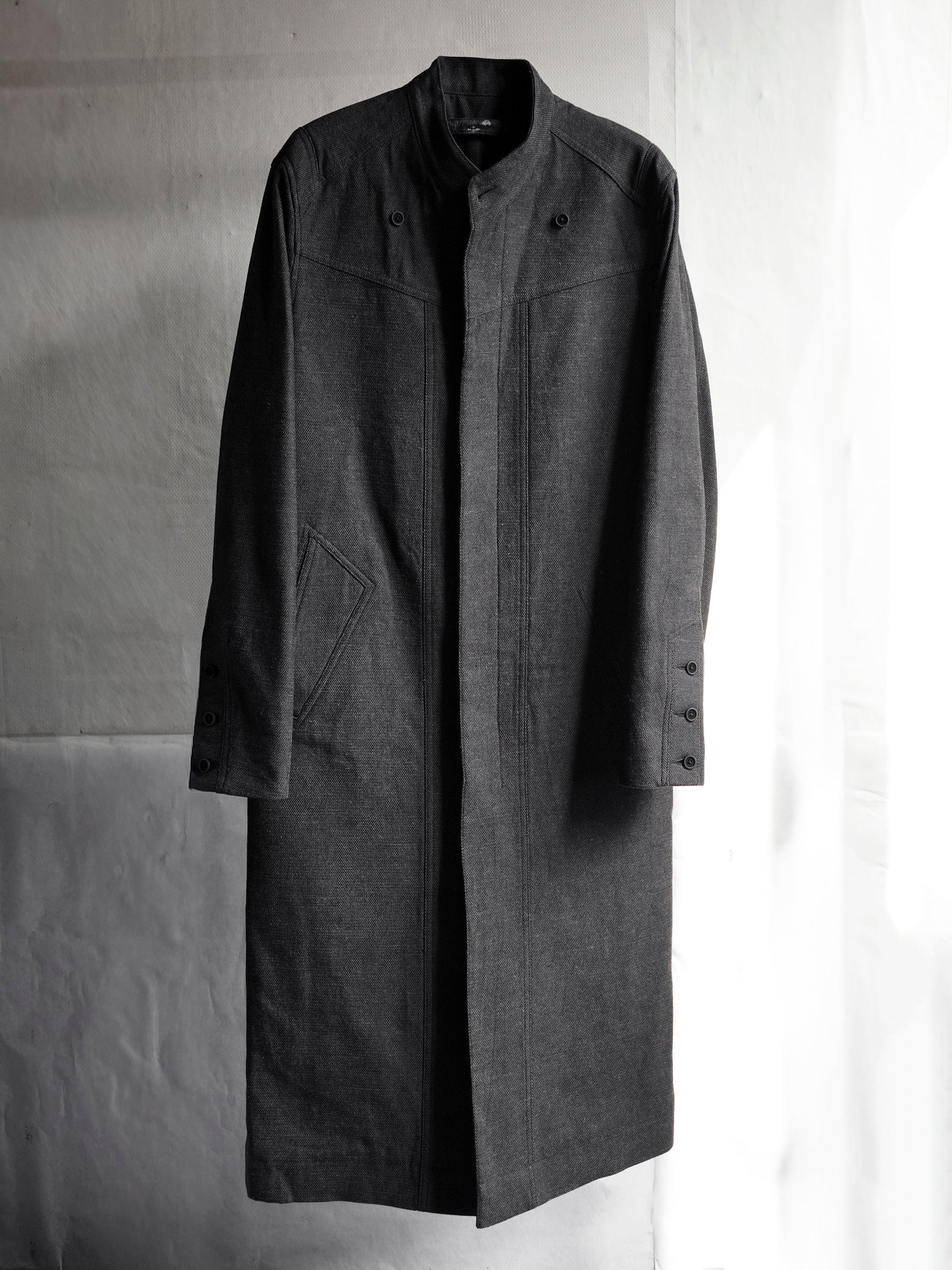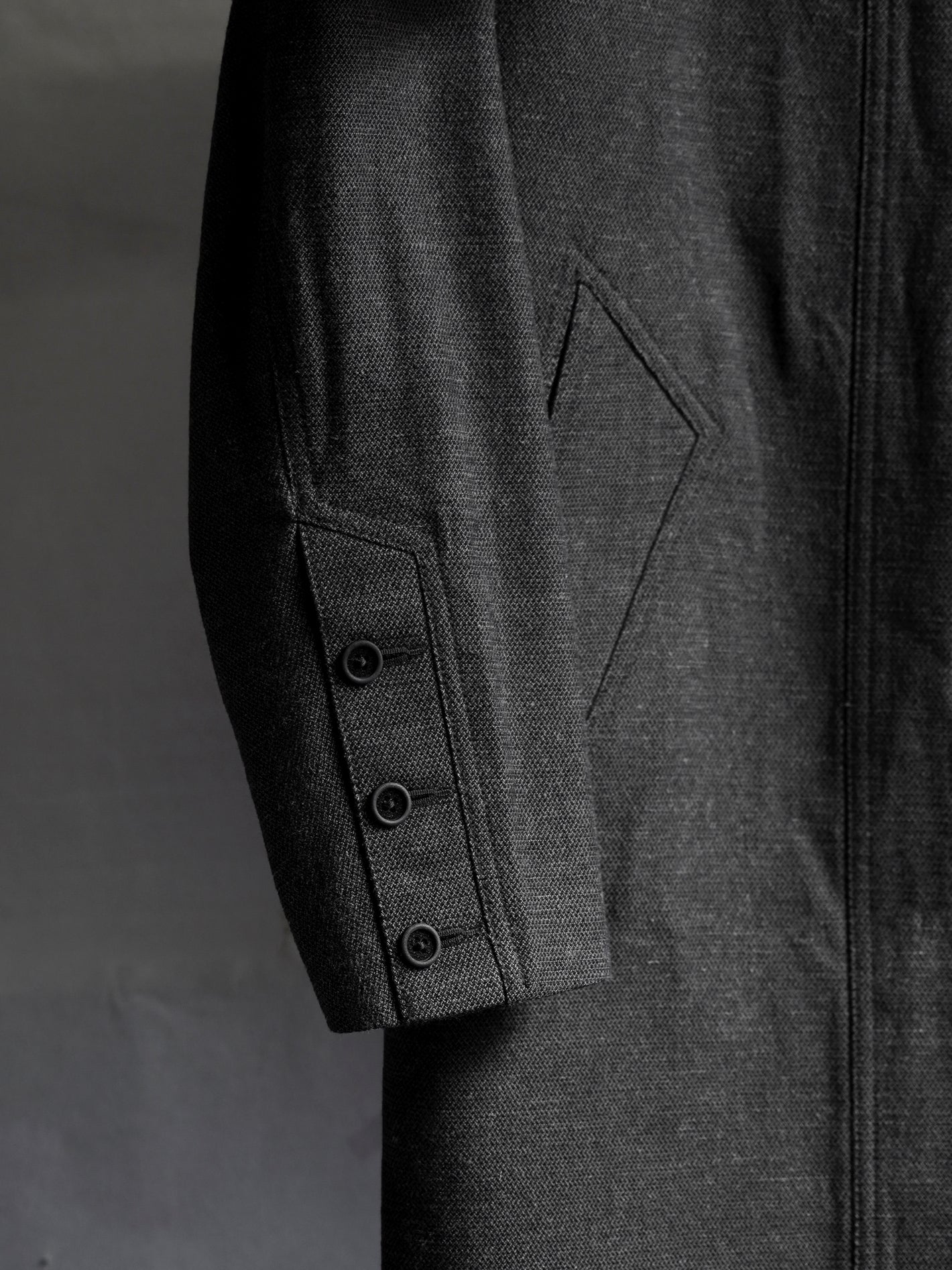 미디움웨이트 코튼 비스코스 린넨 혼방 소재의 긴 코트