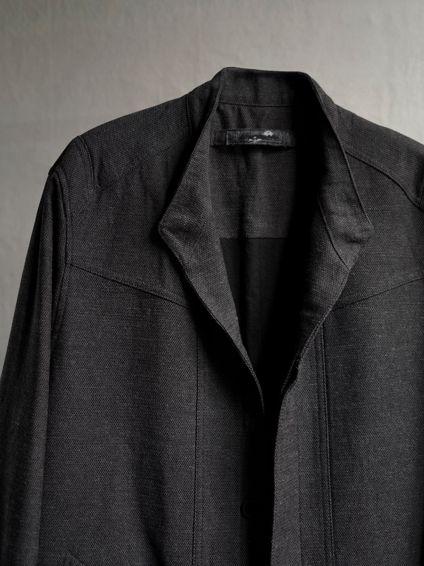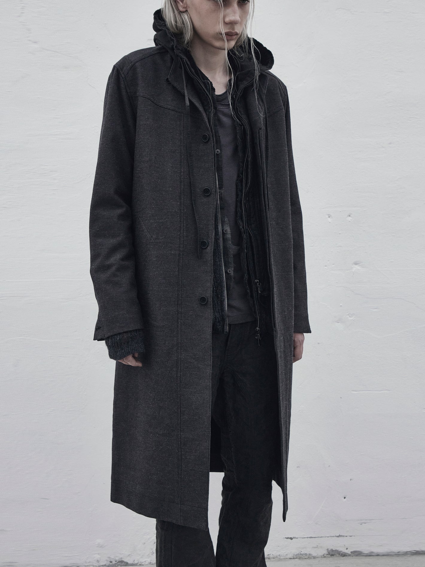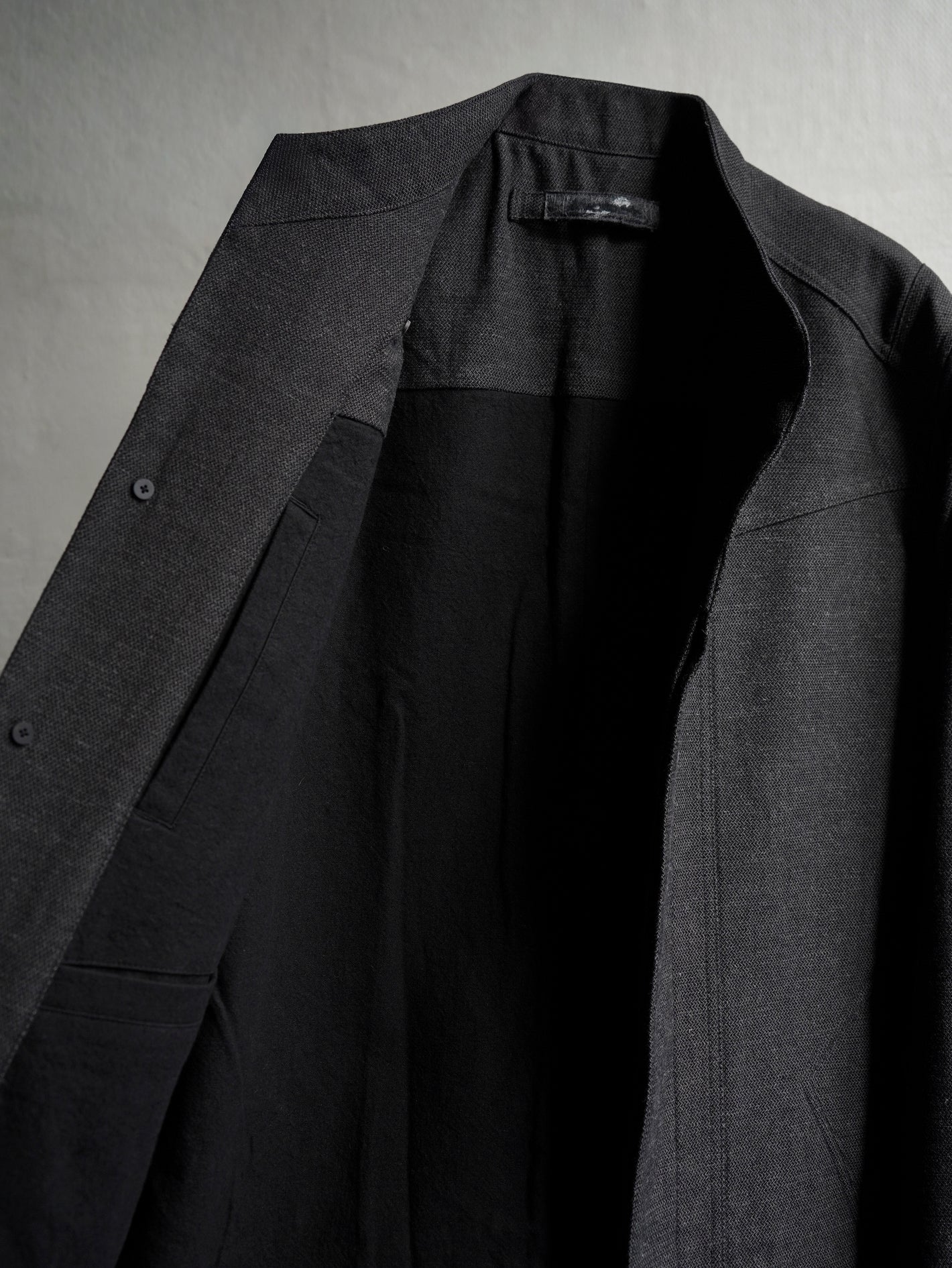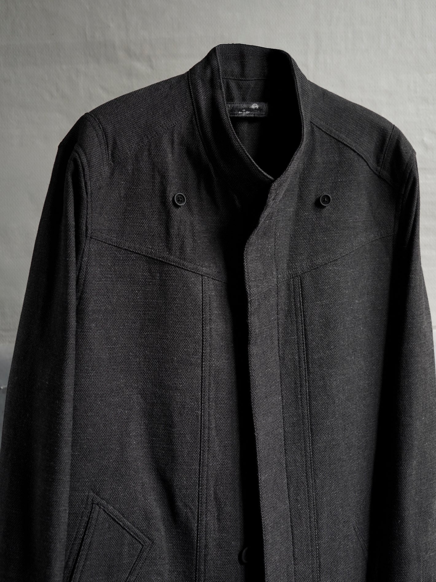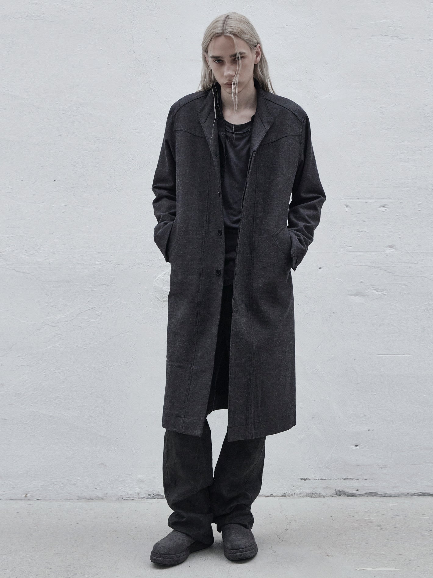 미디움웨이트 코튼 비스코스 린넨 혼방 소재의 긴 코트