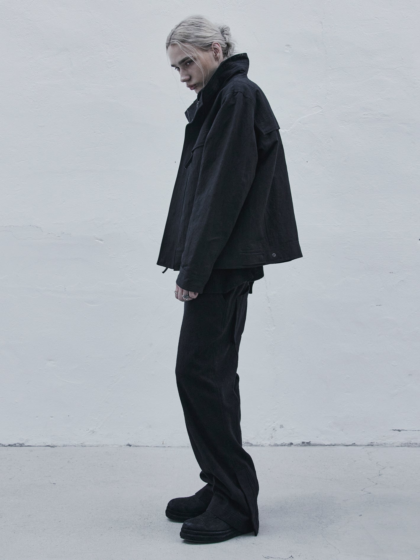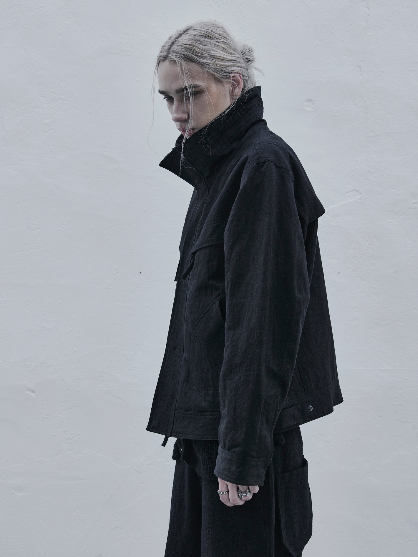 코튼 린넨 캔버스 소재의 하이넥 자켓