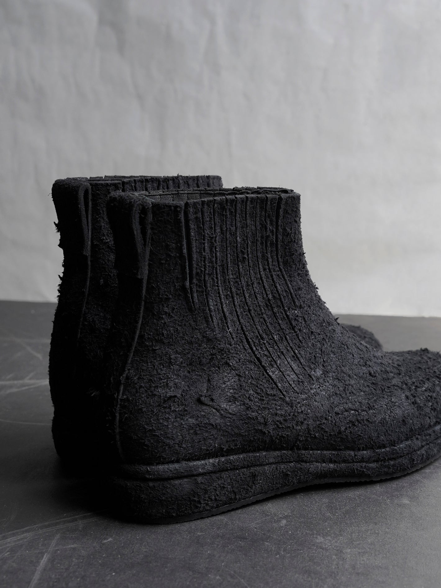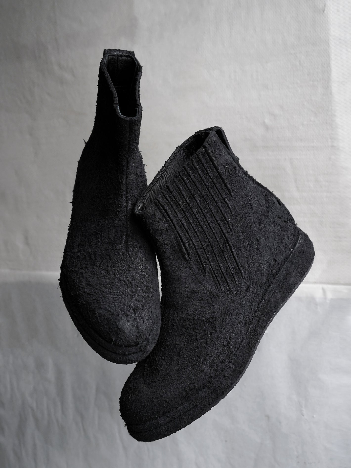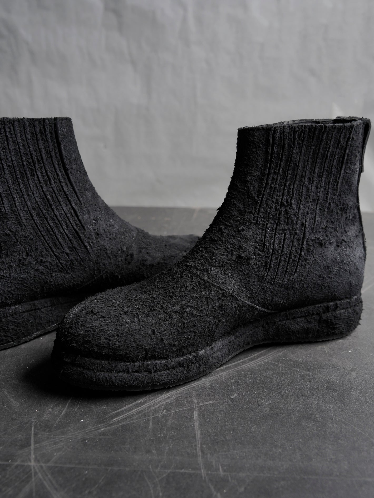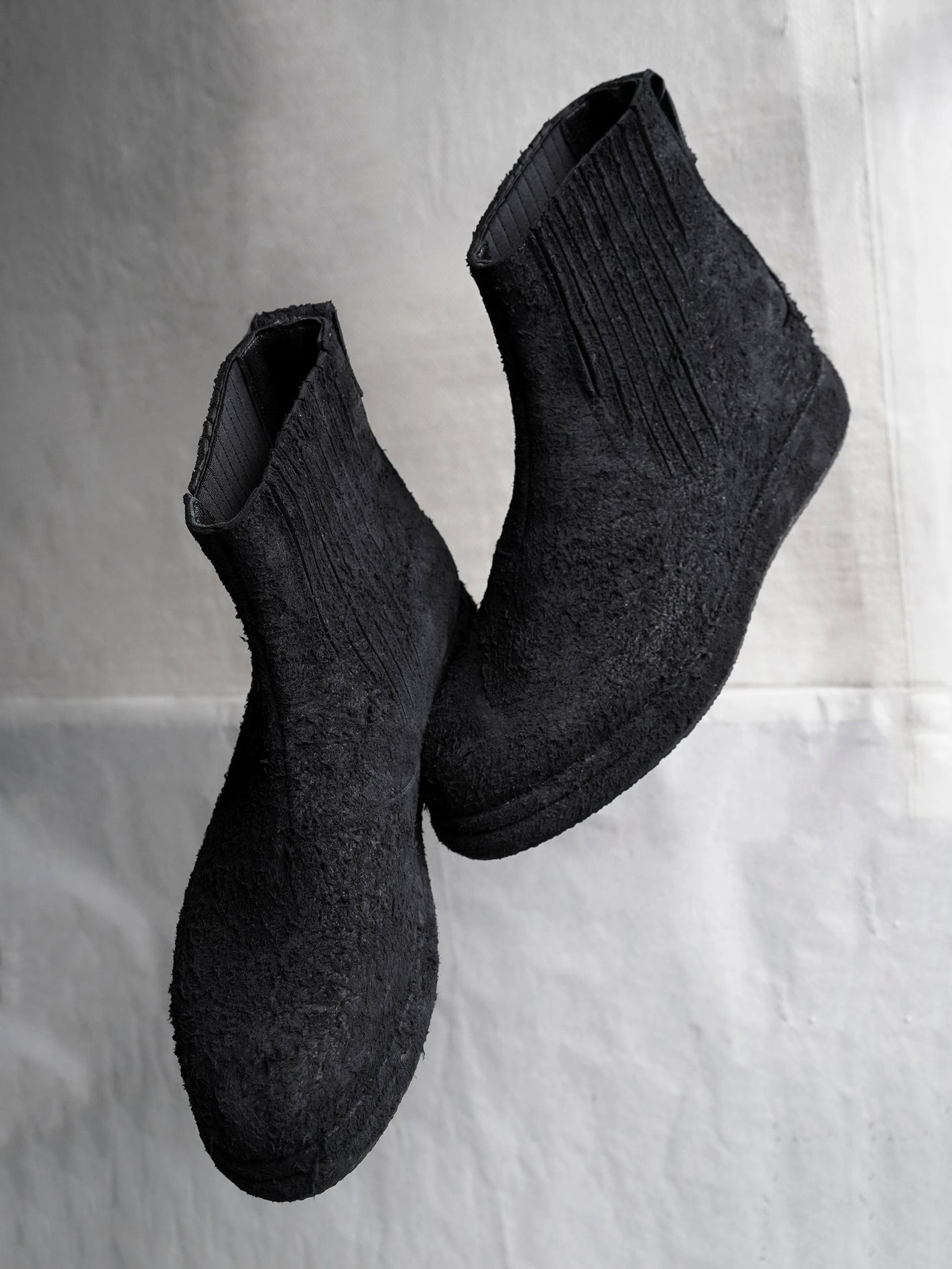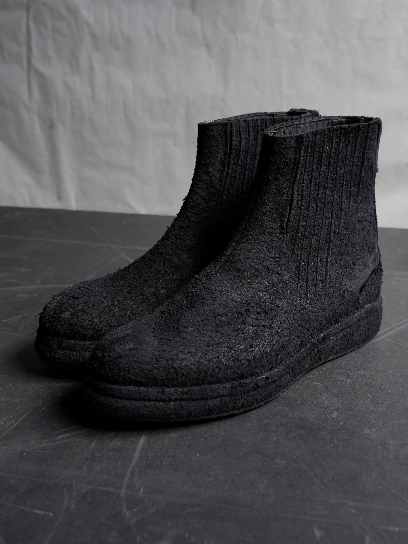 외피와 동일한 소재로 수공 제작된 더블 레이어드 구조의 미드솔