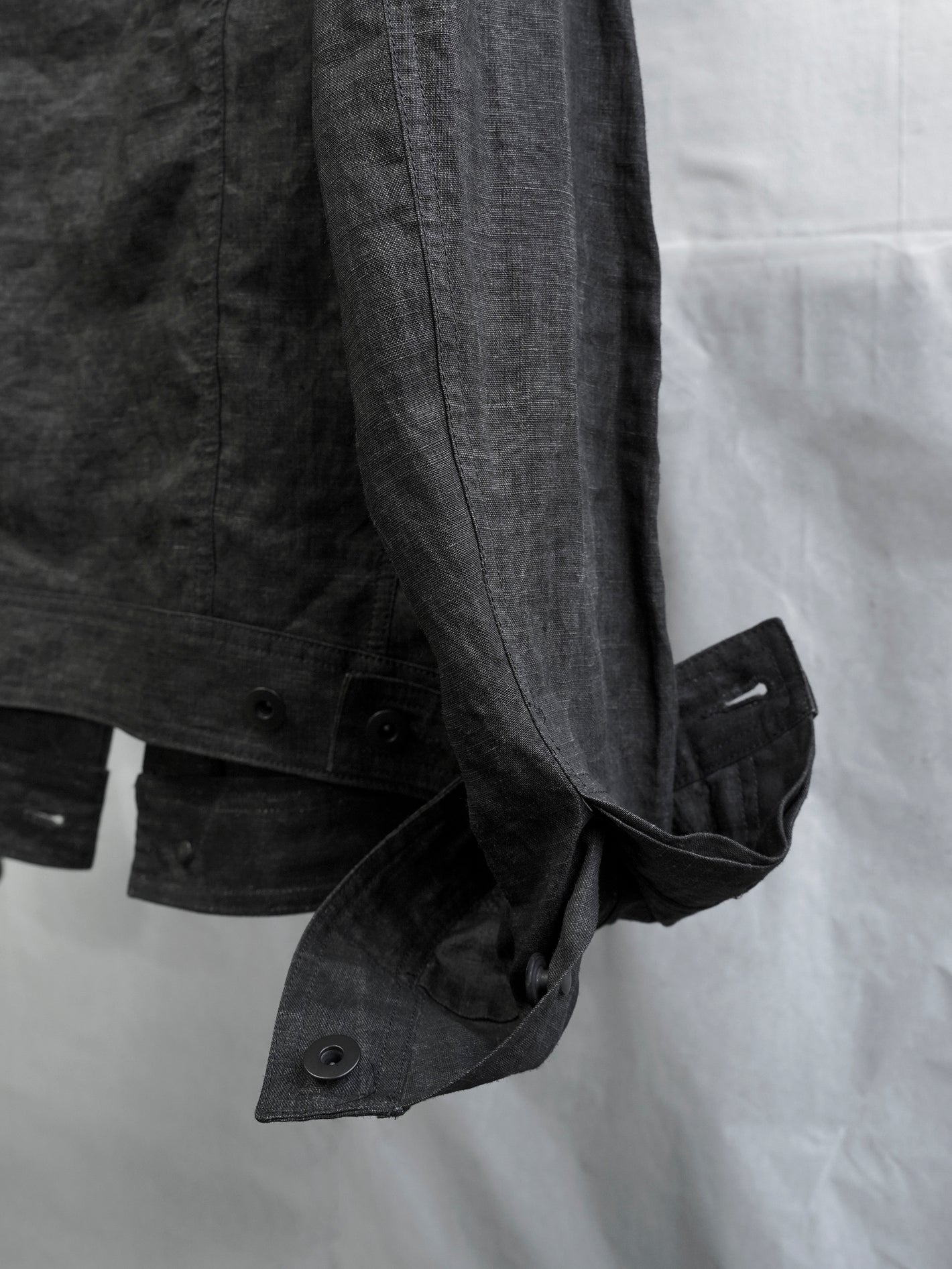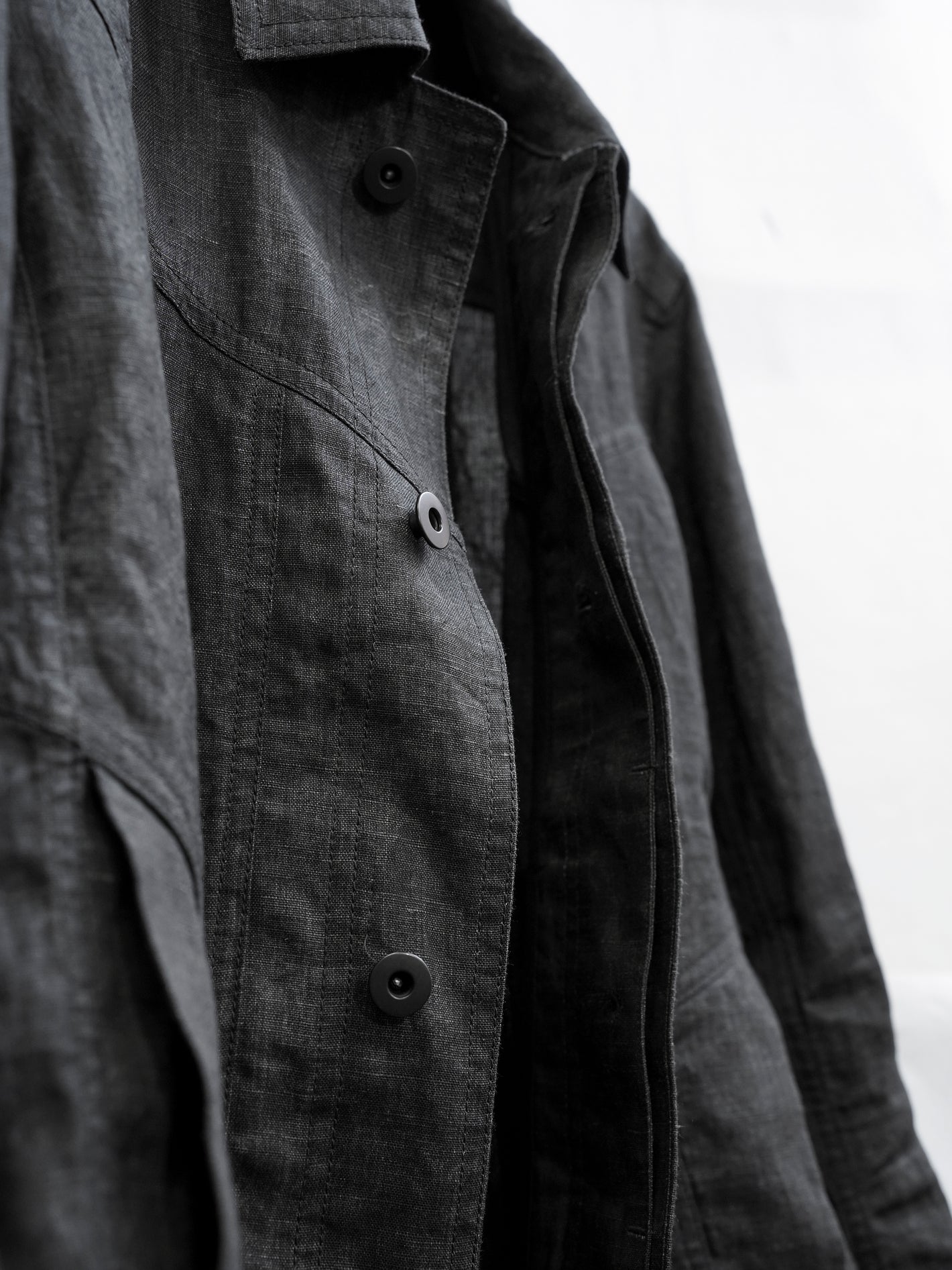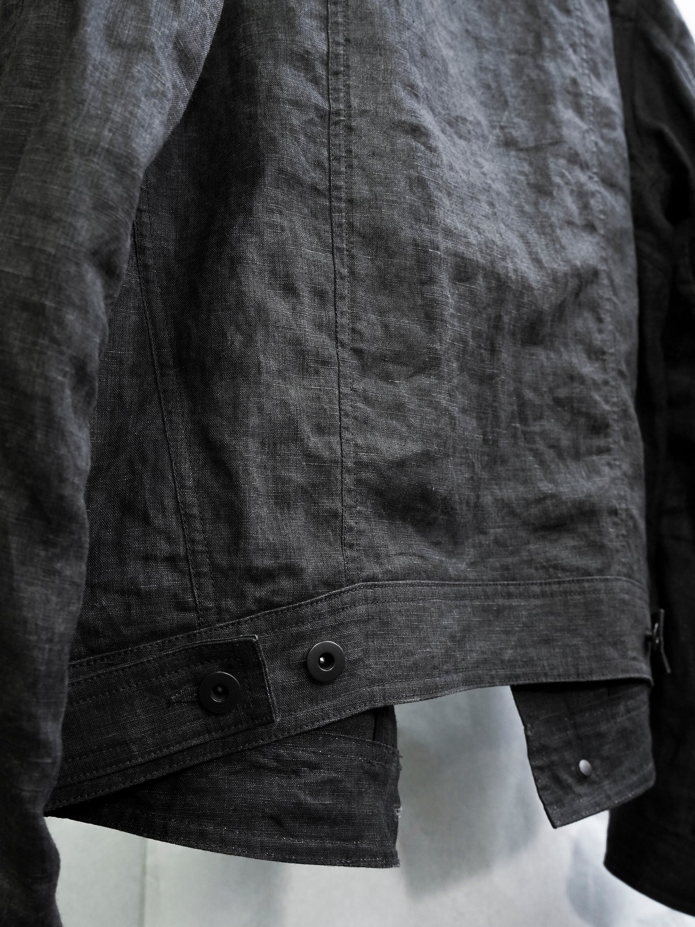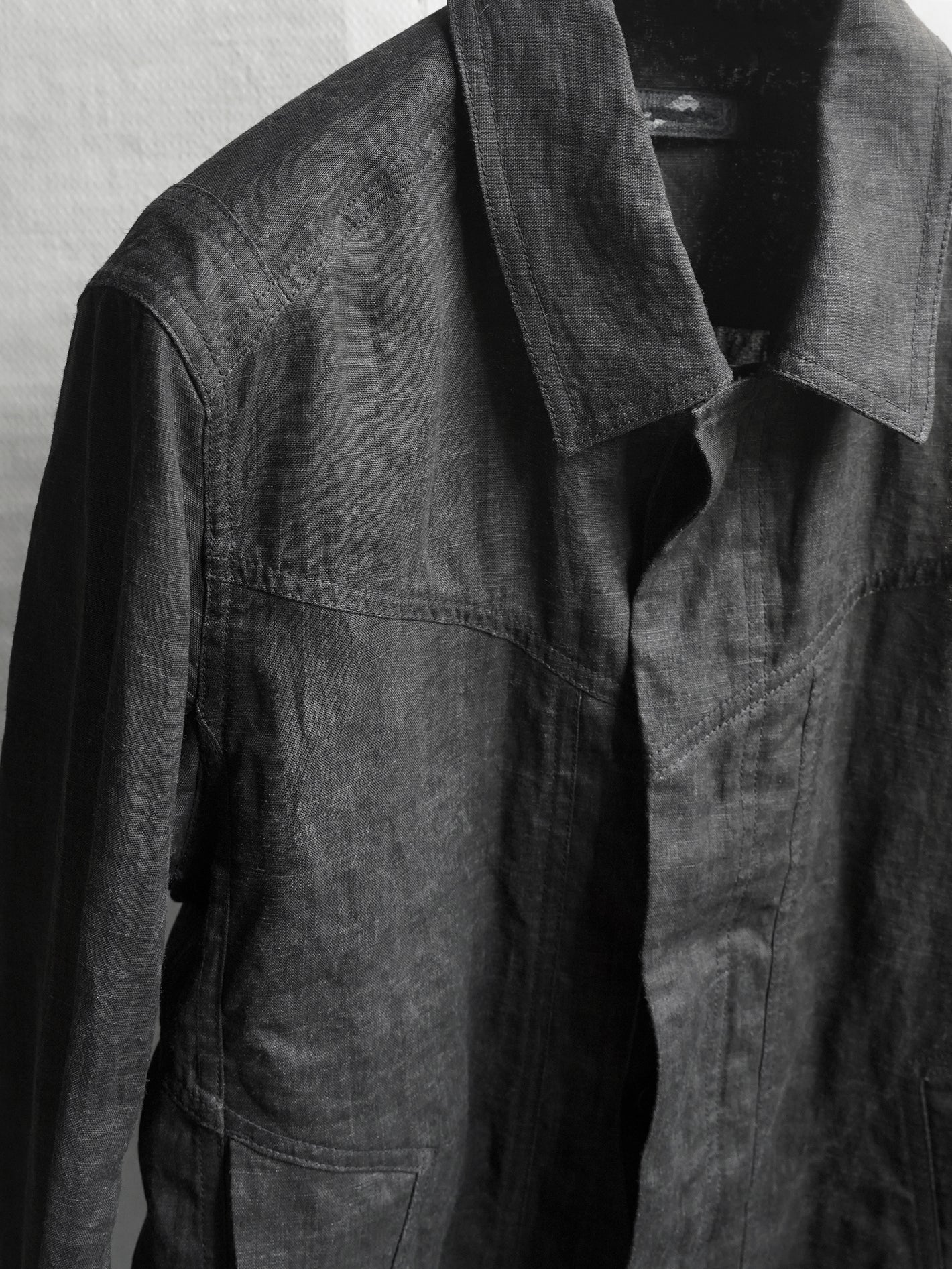 가벼운 중량감의 잉크 코팅된 flax 소재의 트러커 자켓
