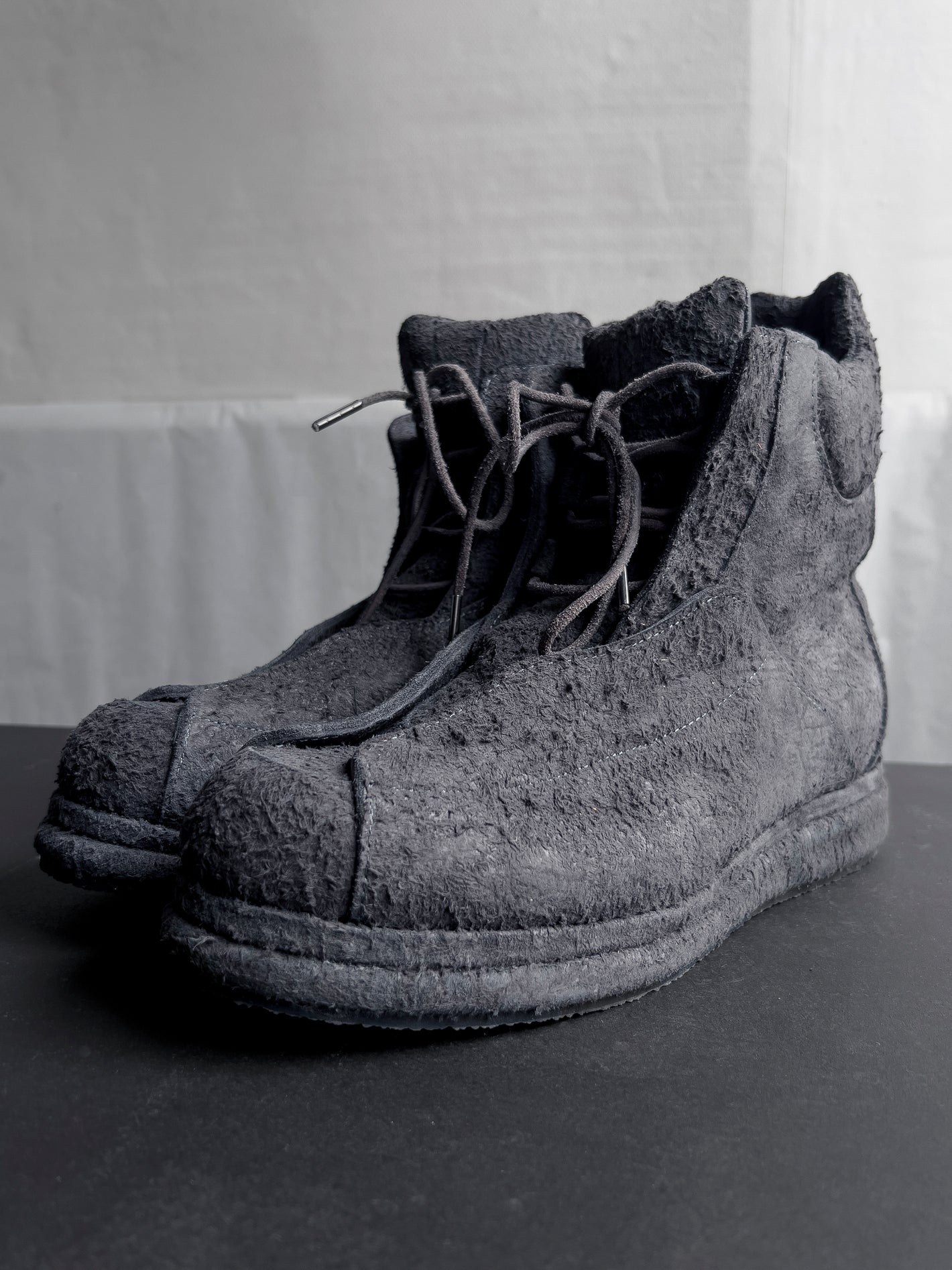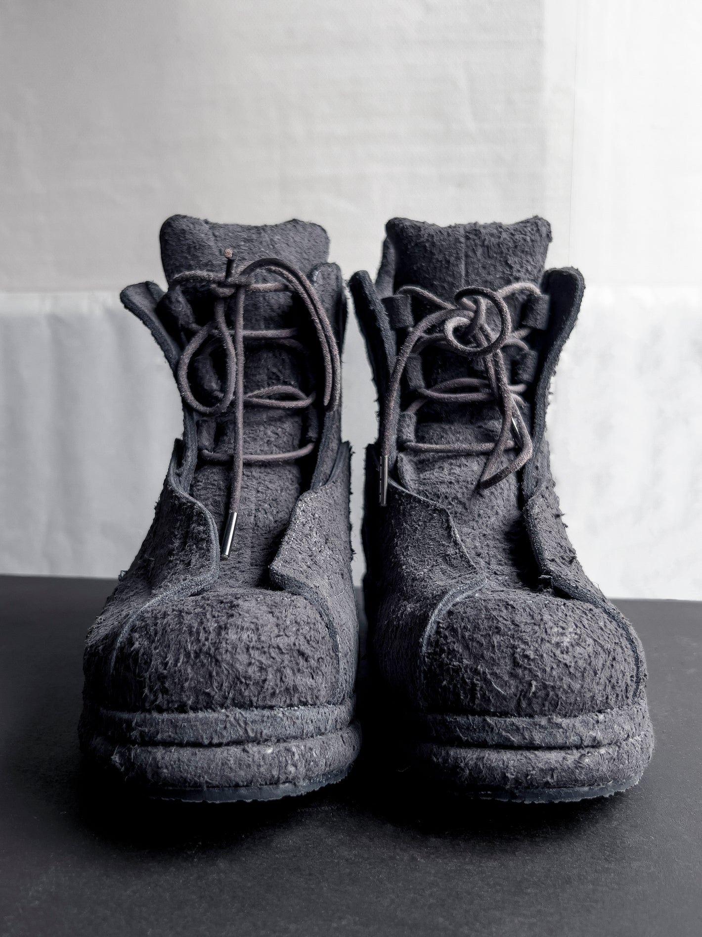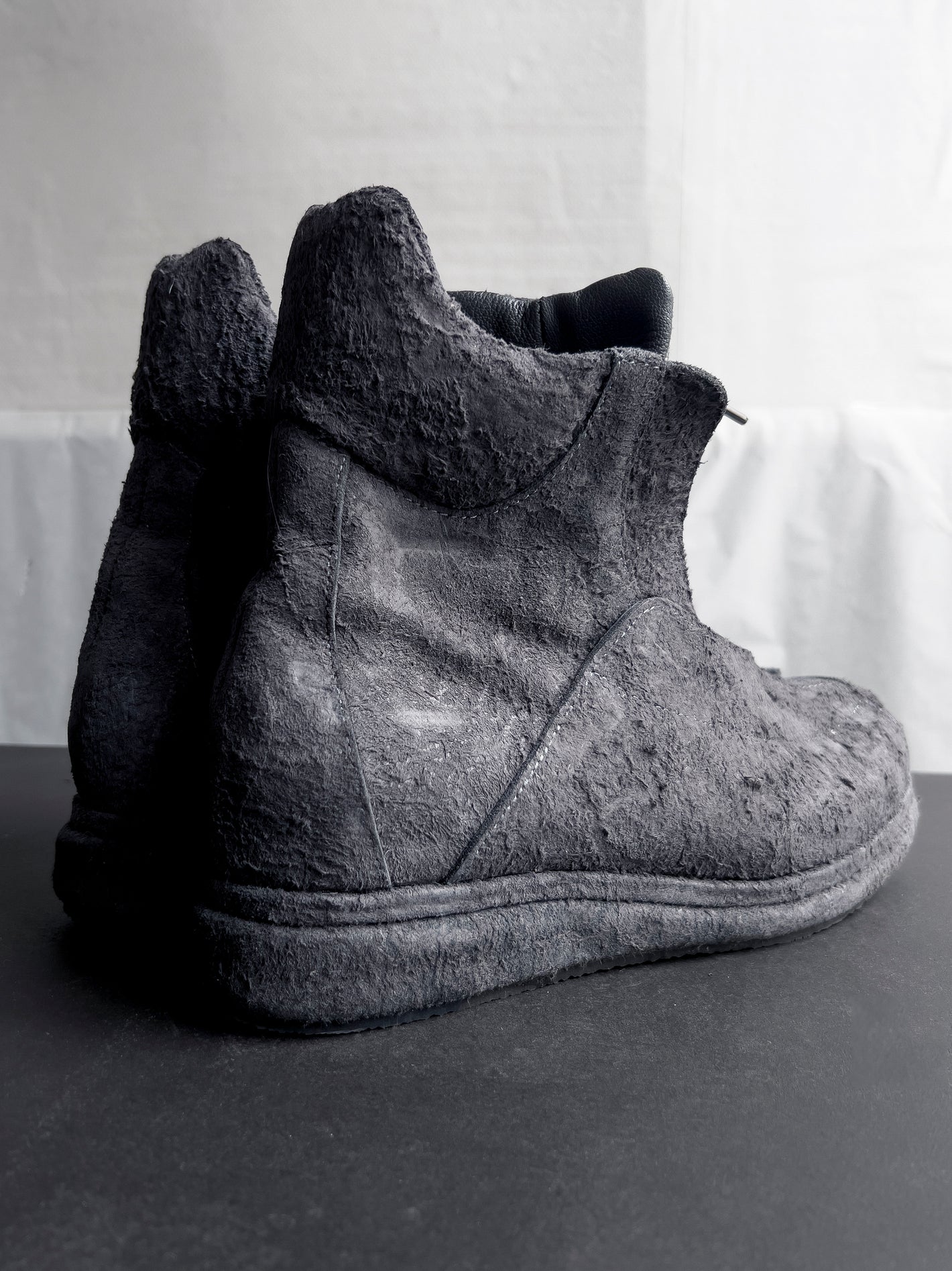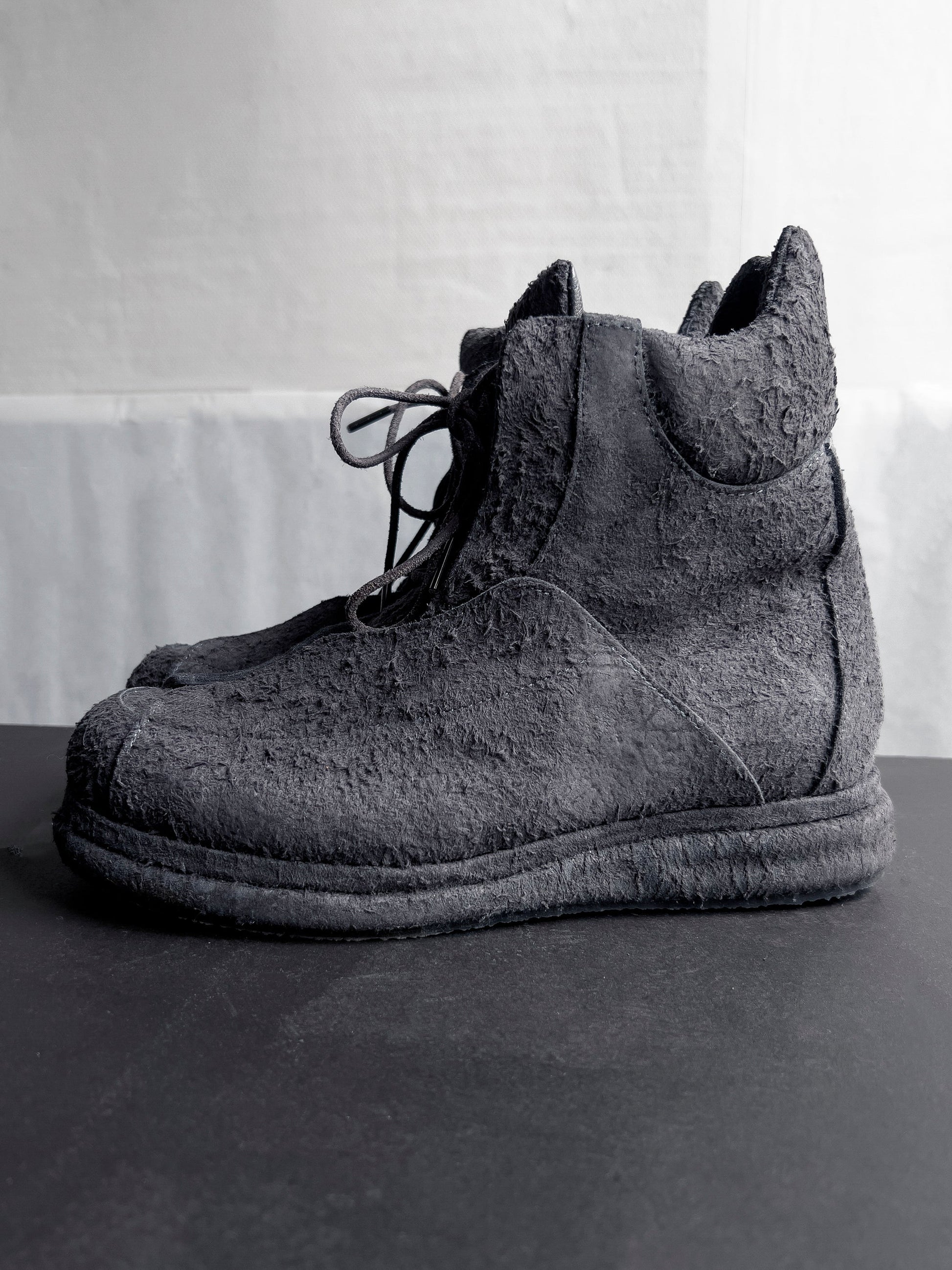 외피와 동일한 소재로 수공 제작된 더블 레이어드 구조의 미드솔