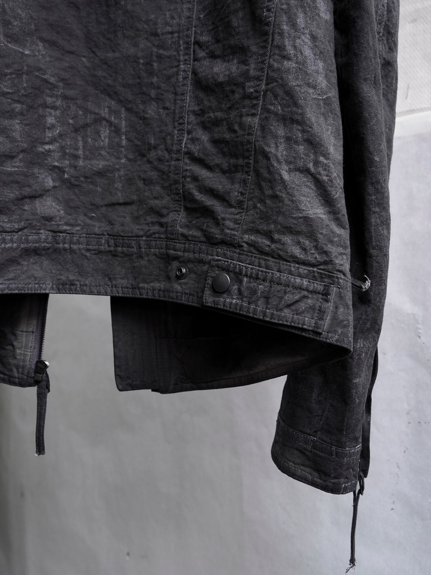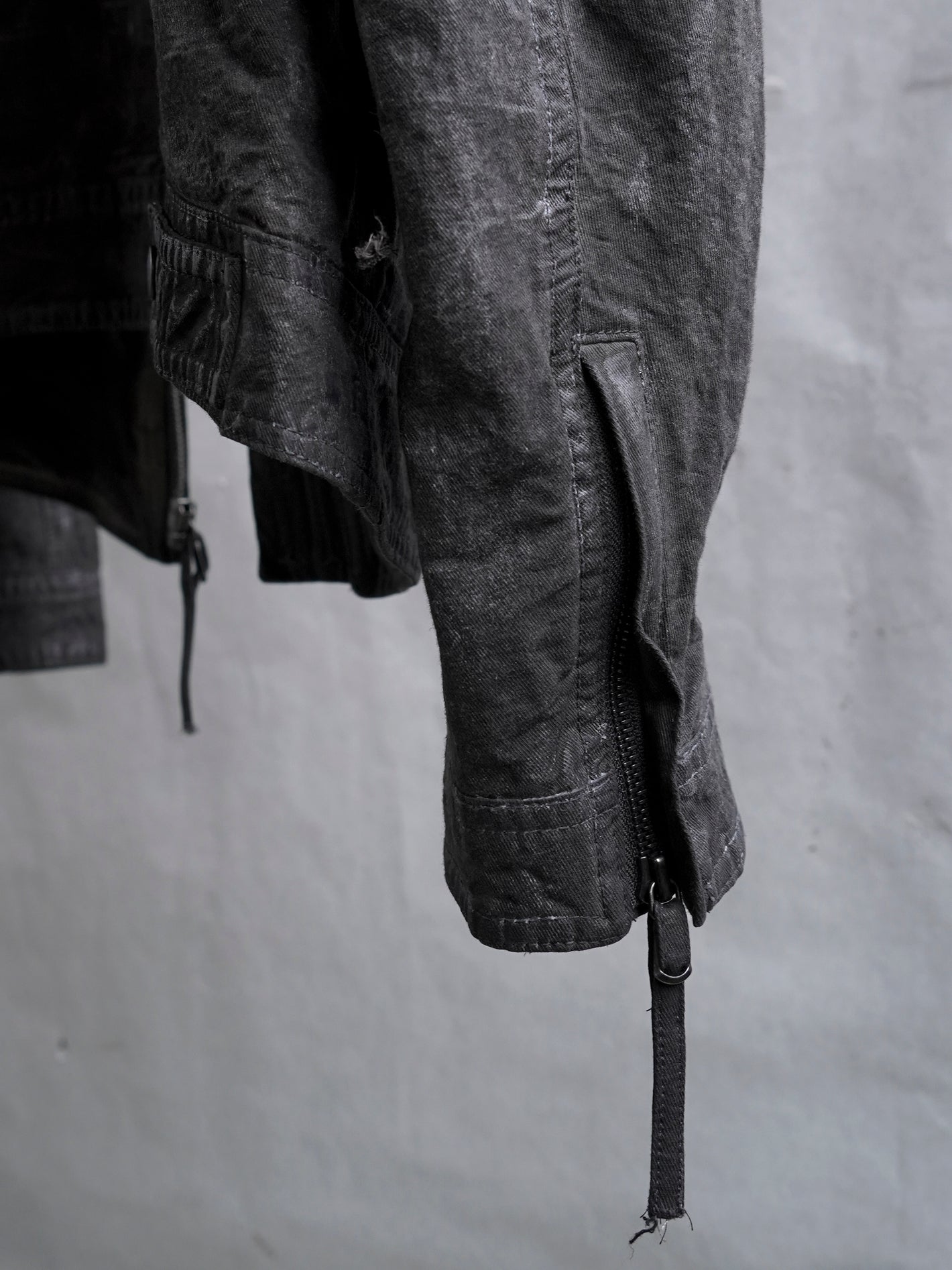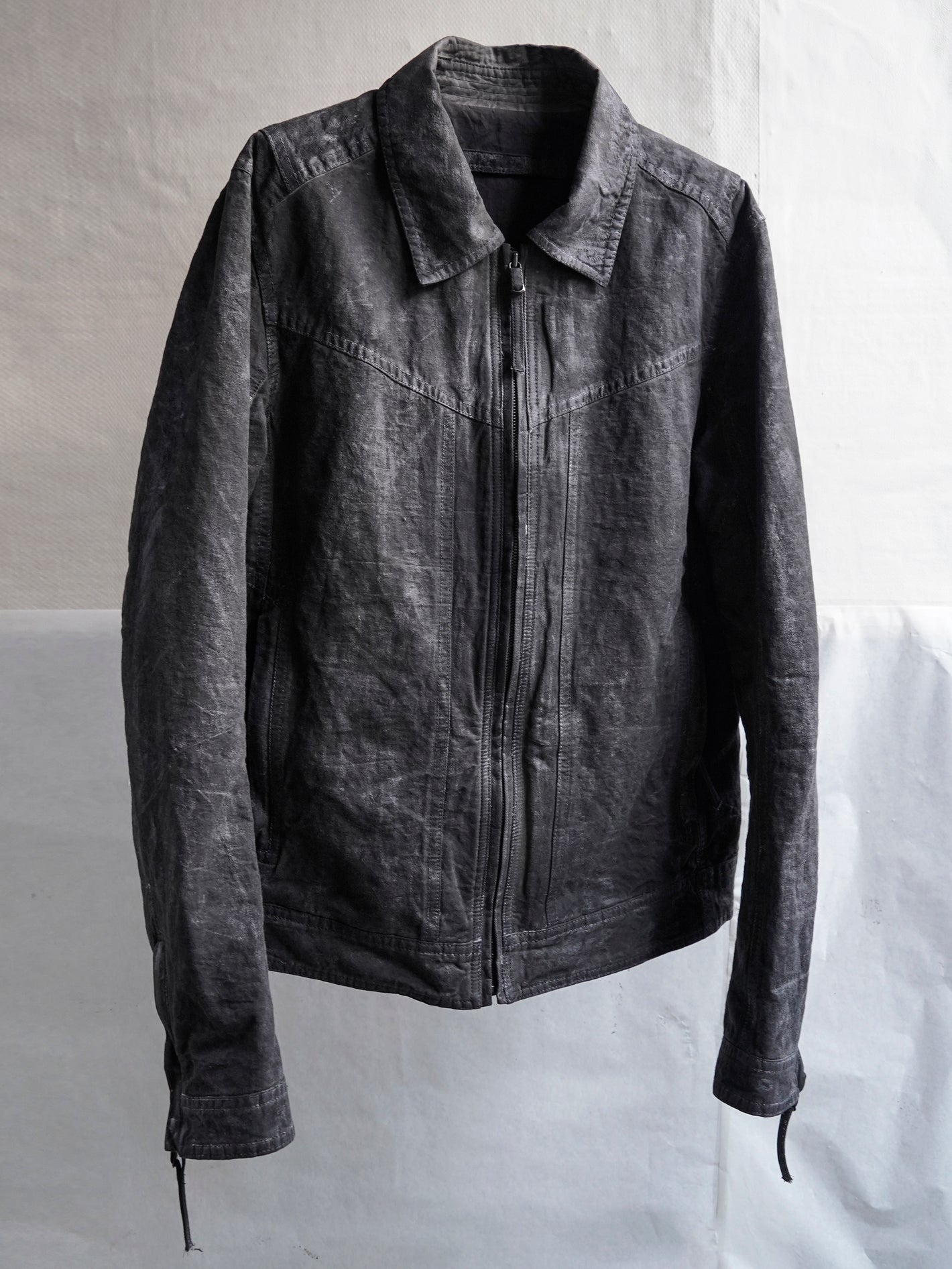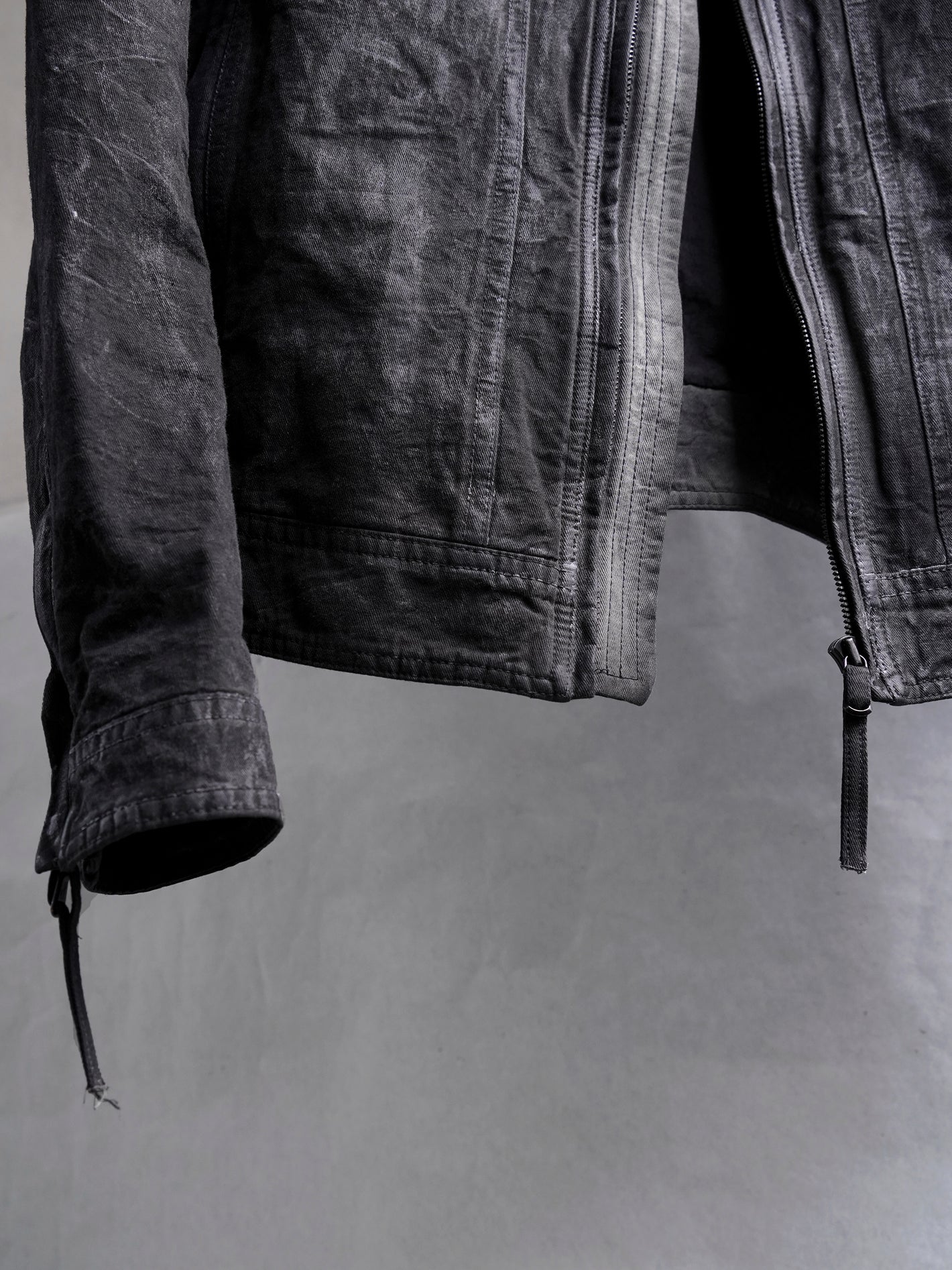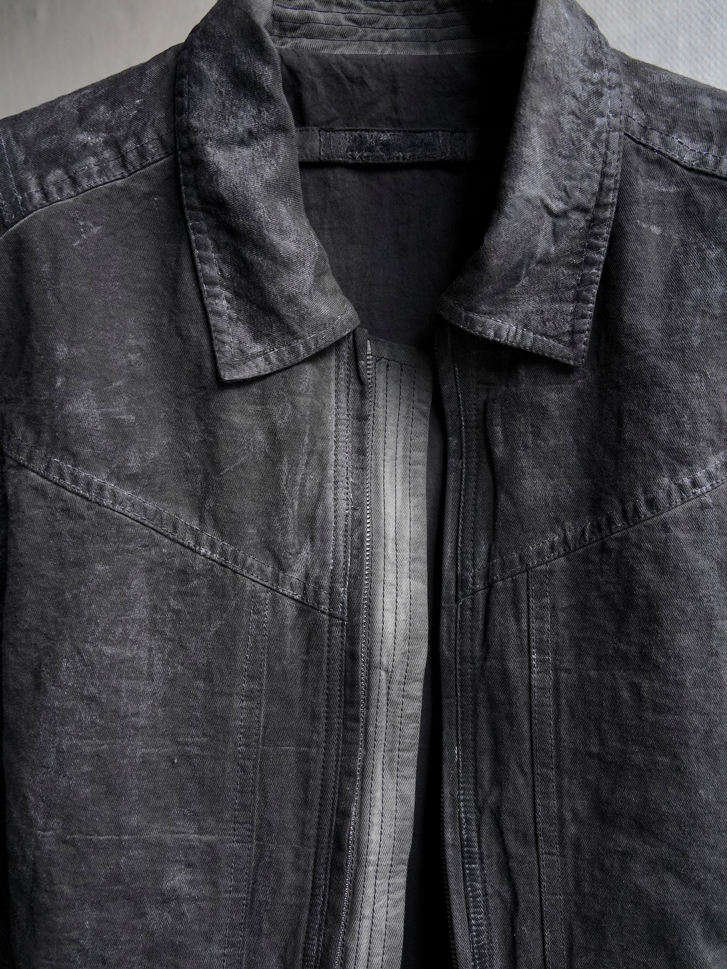 재봉 후, 추가적인 피그먼트 가먼트 다잉과 핸드 왁스 처리로 이러한 특징들을 더욱 강조.